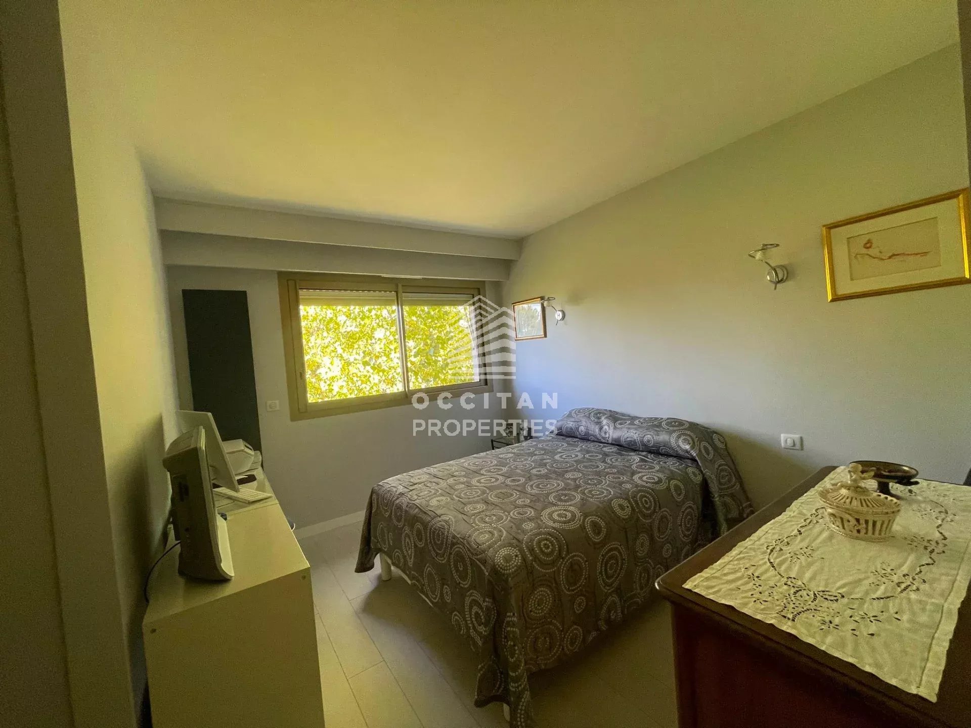 Il se compose d’un vaste séjour lumineux, d’une cuisine indépendante, de deux chambres, de deux salle de bains, de deux toilettes, ainsi que d’une véranda pouvant servir de bureau.